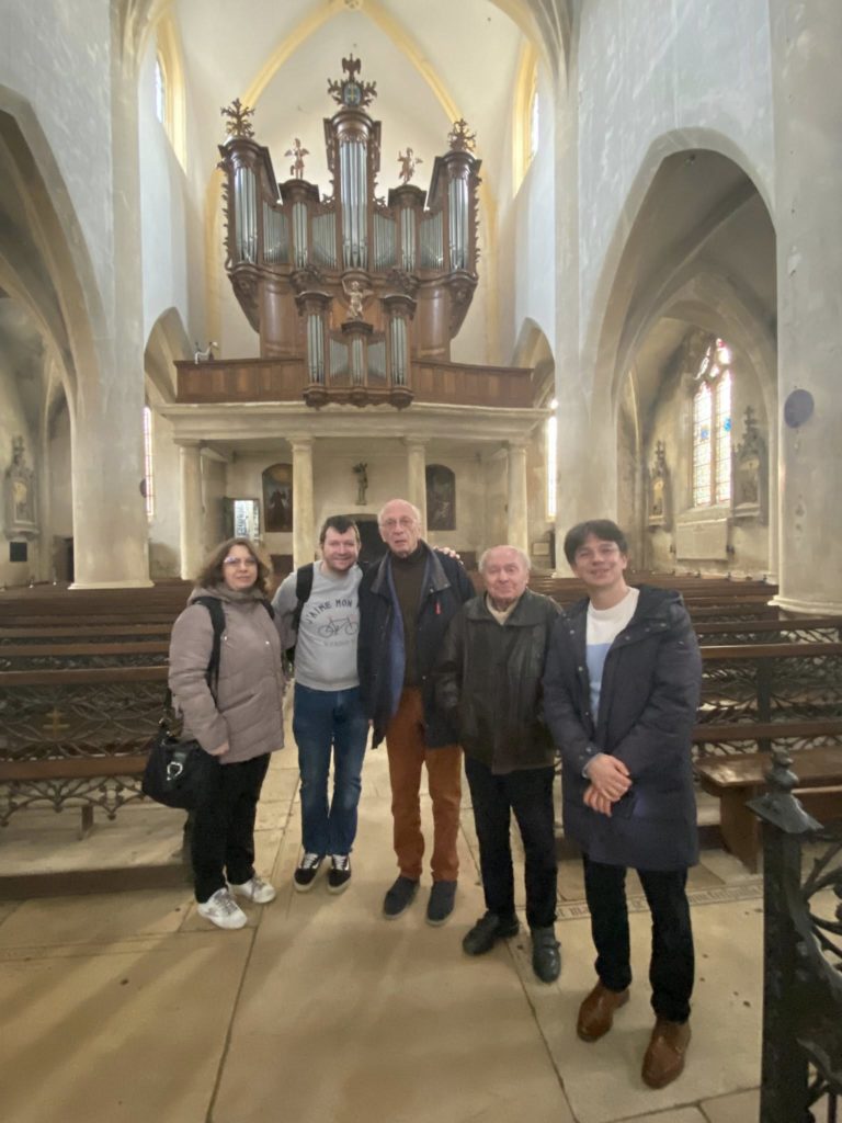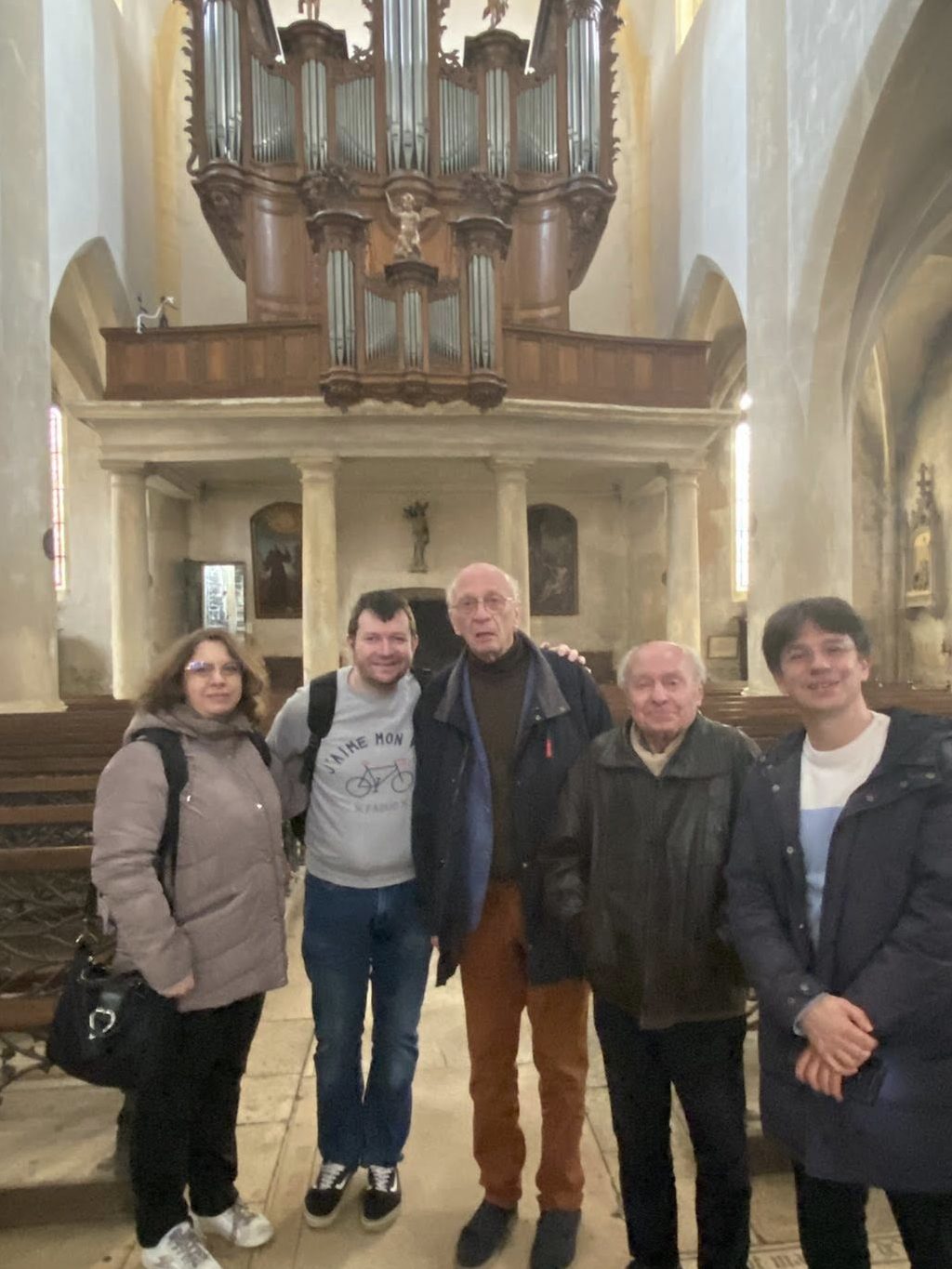 Samedi 14 mars Dominique Dantand a eu le grand plaisir d’accueillir François Henri Houbart organiste de La Madeleine à Paris, Francis Chapelet que l’on ne présente plus et qui du haut de ses 92 printemps a pris l instrument à bras le corps dans des improvisations dont il a le secret. Ils étaient accompagnés de Uriel Valadeau et Laure Janet, deux sympathiques organistes de talent venus l’un du sud ouest et l’autre de Marseille. Rien n’aurait été possible sans la complicité d’Antoine Bou et de sa collection de 2 CV. En fins connaisseurs, la Brasserie La Paumée faisait aussi partie de leur visite. Ce fut un très beau moment amical et musical.