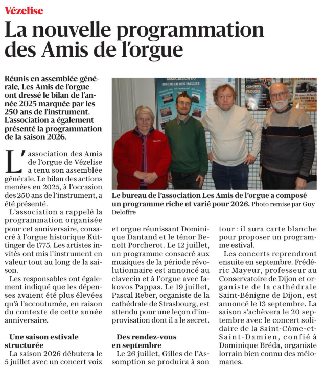 L’assemblée générale ordinaire de l’association a eu lieu le lundi 31 mars 2026 à 20h à Vézelise salle de l’auditoire.